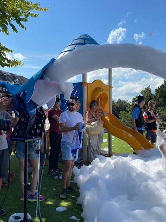 - OCCUPANCY: A maximum of 5-6 kids of equal size at one time for bounce houses, and 1 person at a time for slides is what most inflatable manufacturers recommend.